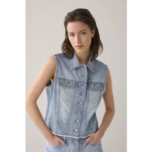 Summum Woman Denim Gilet Vintage Cotton Twill Vintage Blue Denim
