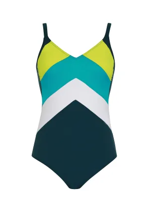 SUNFLAIR Tankini ‘Mastectomy’ limoen / petrol / kiwi / wit