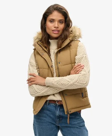 Superdry Vintage Everest Faux Fur Vest Bruin XS Vrouw
