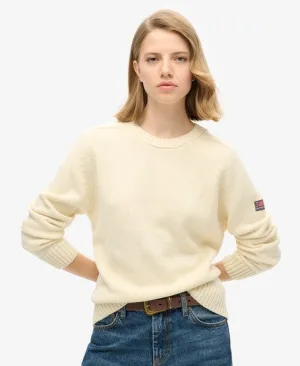 Superdry Vrouwen Wijdvallend Gebreid Sweatshirt met Ronde Hals Wit