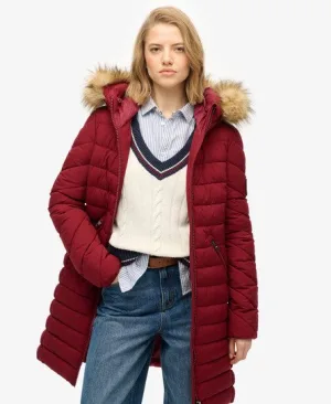 Fuji Middellange Jas Met Bontkraag Red