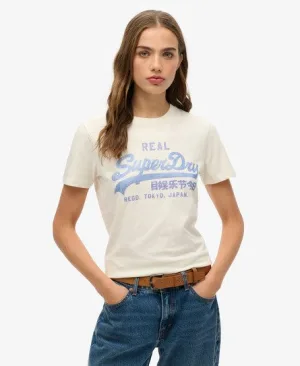 Superdry Vrouwen Vintage Logo Slim-fit T-shirt met Strass-steentjes Crème