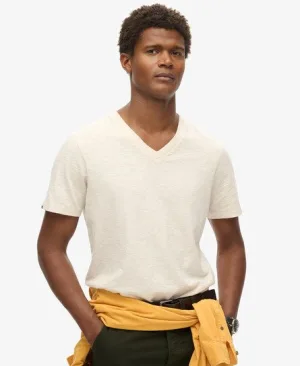 Superdry Mannen Slub-T-shirt met V-hals en Korte Mouwen Crème