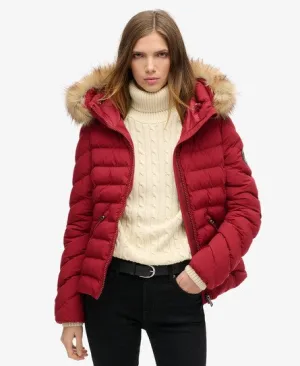 Superdry Vrouwen Gewatteerde Fuji-jas met Capuchon van Imitatiebont Rood