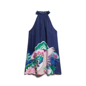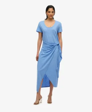 Superdry Vrouwen Midi-wikkeljurk van Slubstof Blauw
