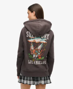 Superdry Vrouwen Tattoo Hoodie met Rits en Stras Zwart