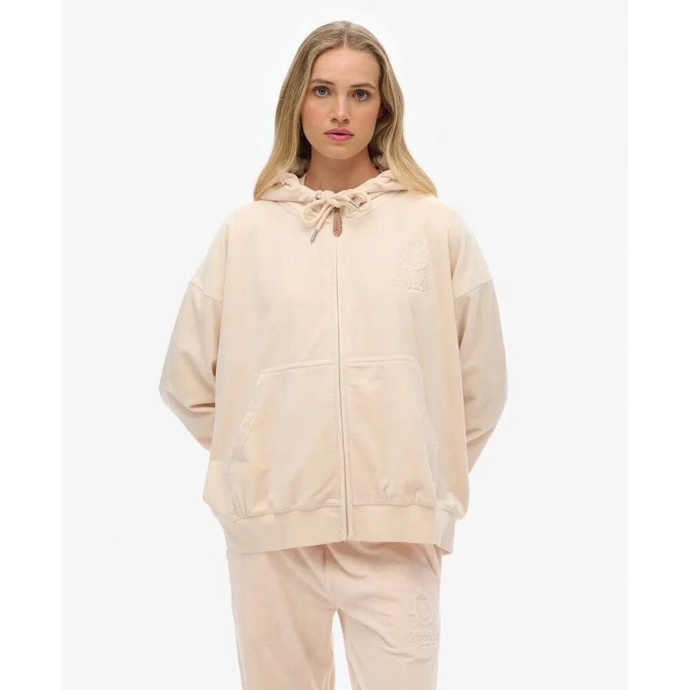 Dames hoodie met ritssluiting van velours Superdry Country Club