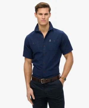 Superdry Mannen The Merchant Store – Overhemd met Korte Mouwen en Textuur Blauw