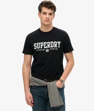 Superdry Mannen Essential Gestreept Retro T-shirt met Logo Lichtgrijs