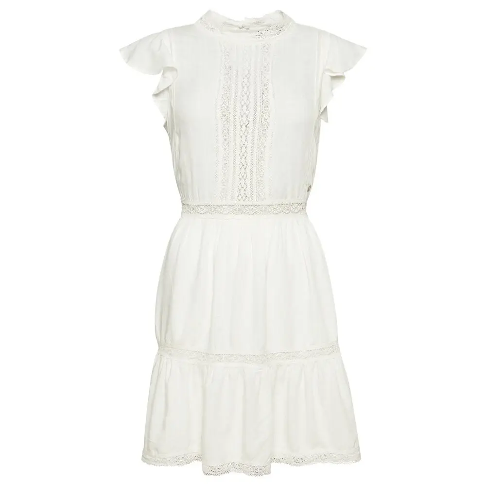 Ibiza Gelaagde en Fonkelende Mini-jurk met Lange Mouwen Wit