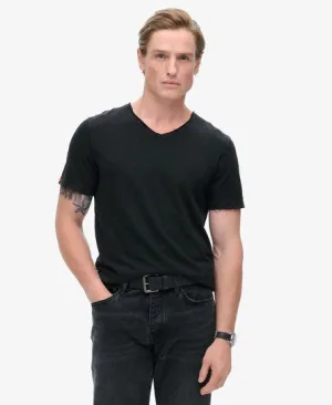 Superdry Mannen Raw Edge T-shirt van Slubgaren met V-hals Zwart