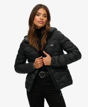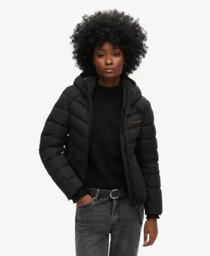 Superdry Vrouwen Gewatteerd Jack van Microvezel met Capuchon Zwart