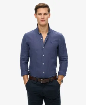 Superdry Mannen Linnen Vacation Overhemd met Borduursel Blauw