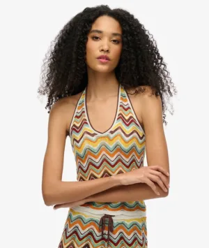 Gebreide Haltertop met Zigzagmotief Green