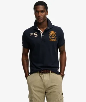 Double Emblem Jersey Rugby Polo Blauw
