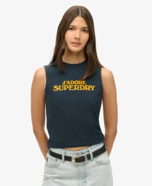 Superdry Vrouwen Slimfit Sport Luxe Graphic Tanktopje Blauw