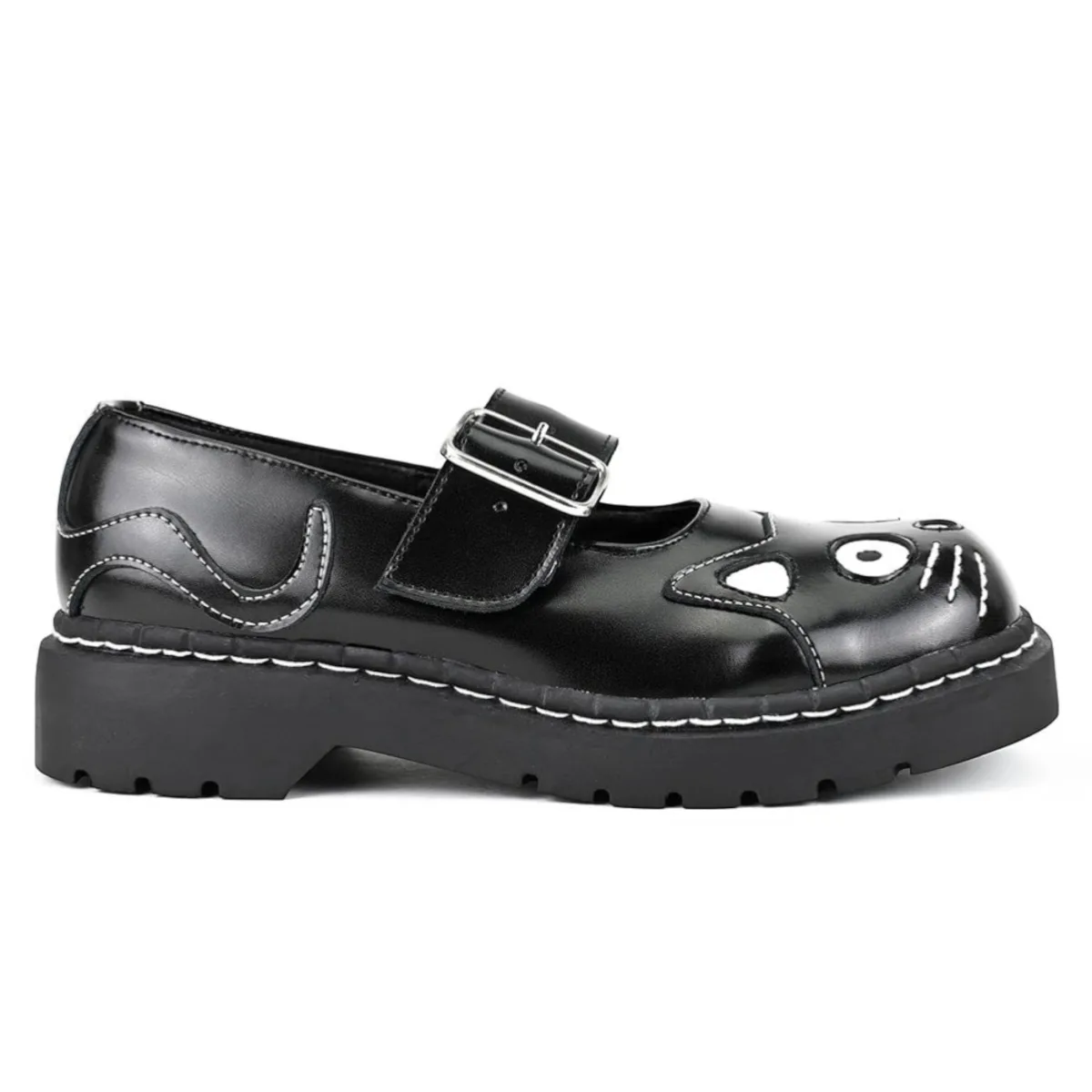 TUK Dames Mary Jane Kitty Zwarte Leren Platform Goth Schoenen – T2025