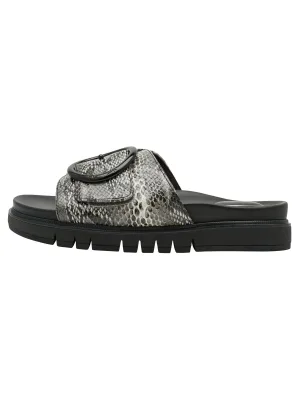 Tamaris herenslippers van zwart leer met instapzool en voetbed.