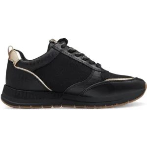 Tamaris Dames Zwart Wit Bont Suède Mode Veterschoenen