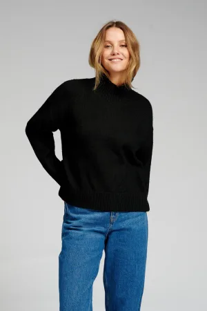Oversized Gebreide Polo-Neck Trui – Zwart