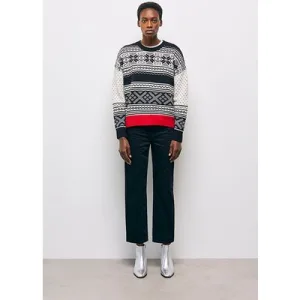 The Kooples Pull Col Rond Jacquard Avec Rib Contraste Black Red Off Whit