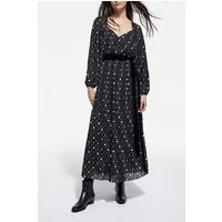 The Kooples Robe Longue Plissee Polka Dots Black Velvet Ceinture Black-e