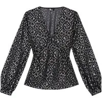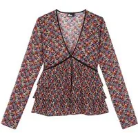 The Kooples Long-sleeved V-neck Top With Pleated Ruffles Multicolor