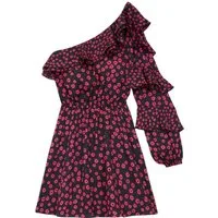 The Kooples One Shoulder Print Daisy Dots Long Sleeved Short Dress Pink