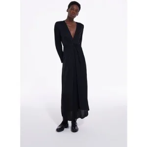 The Kooples Long Dress With Long Sleeves Neckline Black
