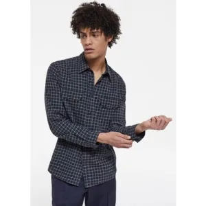 The Kooples Chemise Manches Longues Et Poches A Carreaux Navy Ecru
