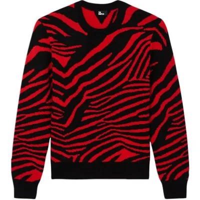 The Kooples Round-neck Sweater In Zeber Jacquard Black – Red
