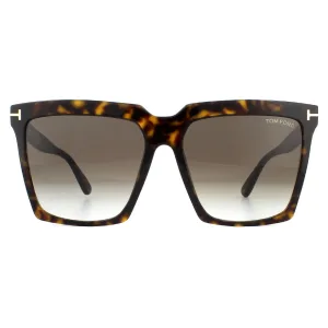 Tom Ford Square dames glanzende zwarte rook grijze gradiënt zonnebril
