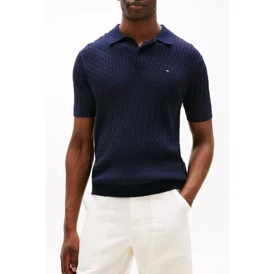 Tommy Hilfiger Cable Knitted Regular Fit Polo Shirt Desert Sky