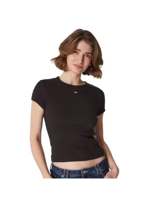 T-shirt Universal Essential Côtelé Tommy Hilfiger voor dames in zwart