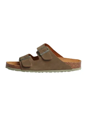 Platte leren sandaal met elastische bandjes | ETNA