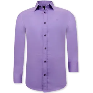 Luxe Blanco Mannen Satijn Overhemd – Slim Fit – 3073 – Paars