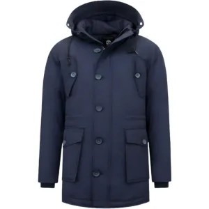 Winterjas Heren – Jassen Heren – Winterjassen Heren Lang – Jas – Parka Heren Winterjas – Gewatteerde Jassen – Jassen Heren Winter Capuchon – 8202 – Blauwe jas