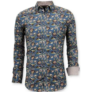 Luxe Italiaanse Heren Overhemd – Digitale Bloemen Print – 3062 – Groen