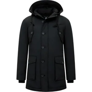 Heren Winterjassen – Lange Jas Heren – Parka heren – 8202 – Zwarte Jas