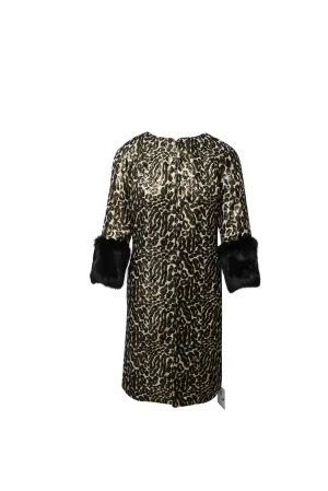 Tory Burch Dierlijke Print Jacquard Jas met Bontmouwen in Multicolor Zijde