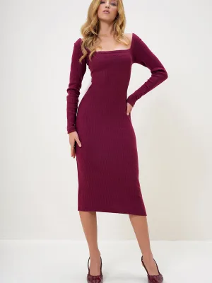 Trend Alaçatı Stili Gebreide jurk wijnrood