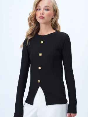 Trend Alaçatı Stili Gebreid vest zwart