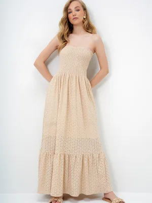 Trend Alaçatı Stili Jurk beige