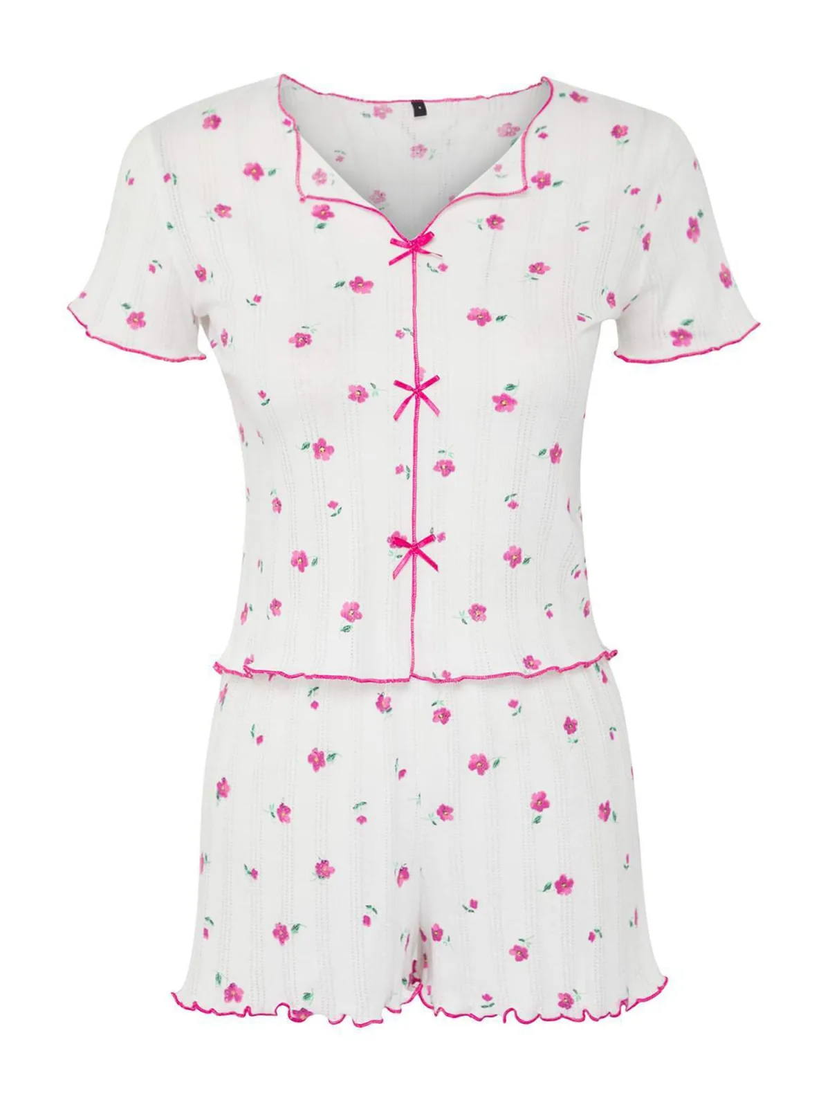 Trendyol Korte pyjama geel / groen / donkerroze / wit