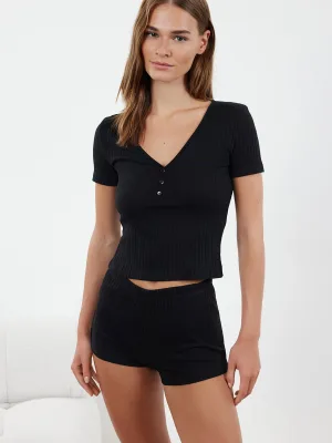 Trendyol Korte pyjama donkerblauw / honing / wit