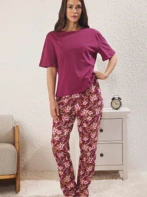 Trendyol Pyjama lichtgroen / fuchsia / bourgogne / wit