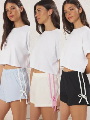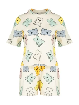 Trendyol Korte pyjama ecru / smoky blue / geel / oudroze