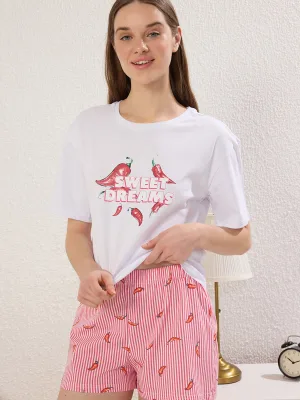 Trendyol Korte pyjama groen / donkerroze / rood / wit