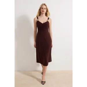 Damesjurk in bruin, plat model, midi-lengte, casual/bodycon model