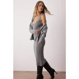 Split Detailed Gebreide kleding Pak Grijs